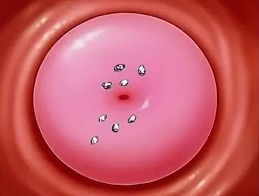 Ретенционные кисты визуально определяются как полупрозрачные образования с желтоватым содержимым. На фотографиях они имеют четкие границы и часто располагаются ближе к цервикальному каналу. Их размер может варьироваться от нескольких миллиметров до 1-1,5 см.